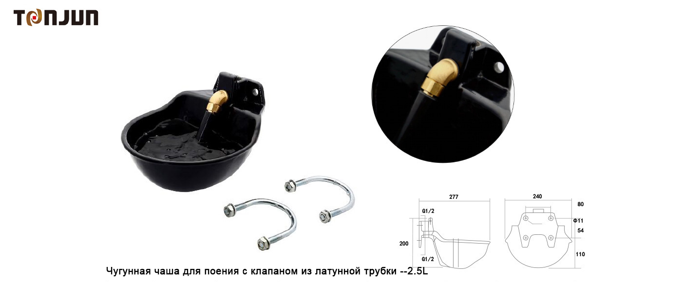 Чугунная чаша для поения с клапаном из латунной трубки --2.5L