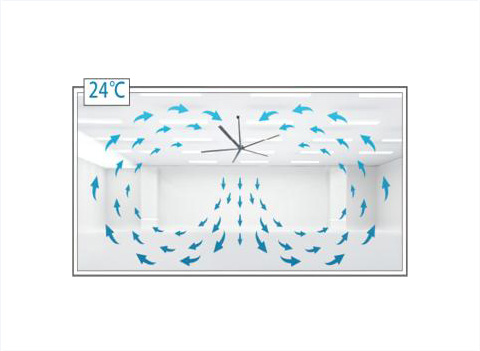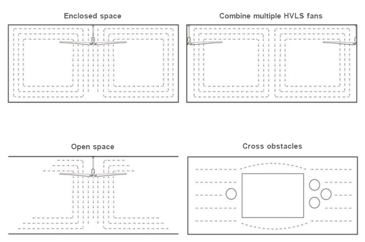Лопасть HVLS-вентилятора циркулирует поток воздуха вверх и вниз, полностью перемешивая поток воздуха и эффективно устраняя температурную стратификацию.
