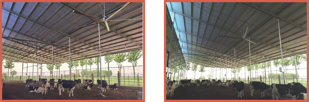 Энергосберегающий вентилятор HVLS предназначен специально для больших пространств пастбища. Он использует технологию HVLS (High Volume - Low Speed, высокий объем воздуха, низкая скорость),и совместно с профессиональными крупными лопастями вентилятора и мотором обеспечивает большой объем почти естественного циркулирующего воздуха, эффективно решая проблемы жаркого и влажного пространства и слоистости воздуха. Обеспечивая коровам полный спектр комфортного естественного ветра, снижает стресс коров. В настоящее время широко используется на европейских пастбищах.